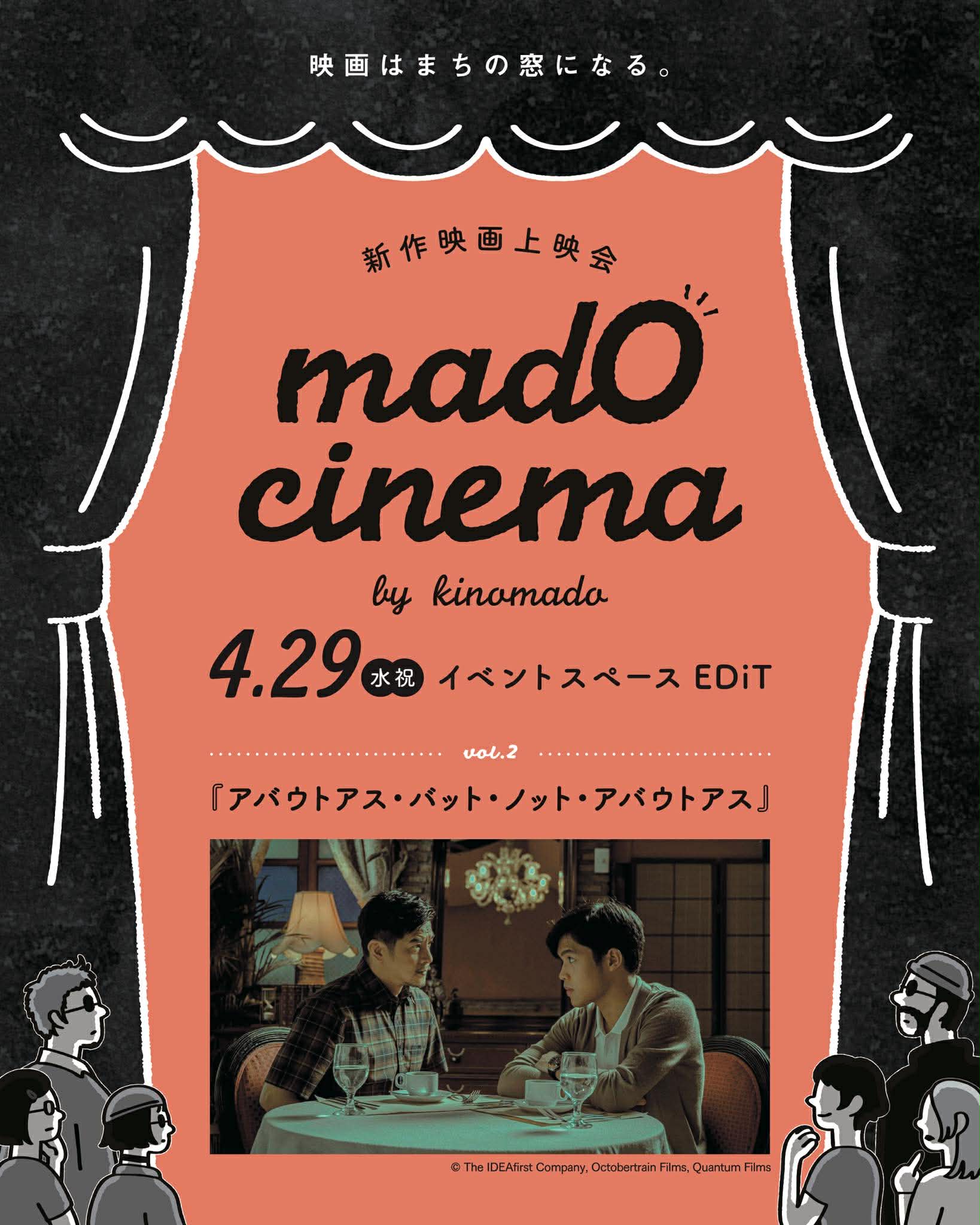 新作映画上映の新たな「窓」をひらく、キノマドの新上映企画。映画館の減少と新作本数の増加により、札幌では劇場公開されない作品が増えています。そんな中、1本でも多くの新作映画をスクリーンで届けたい。そんな想いから始まった上映会が「mado cinema」です。